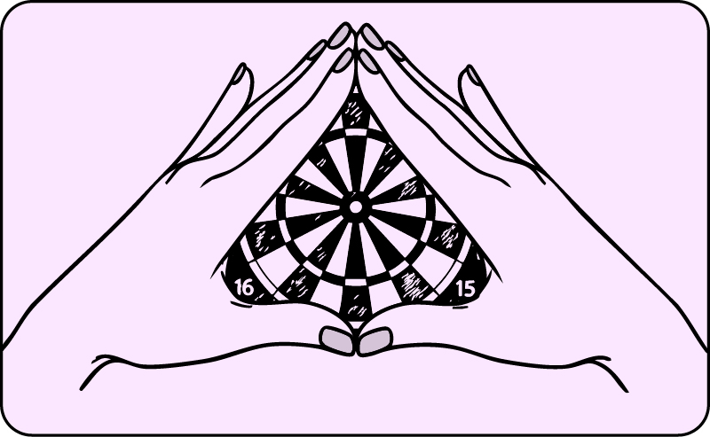 利き目を知ることは、照準を安定させるために不可欠です。フォームを作る際は、この利き目がダーツのライン上にくるように調整します。